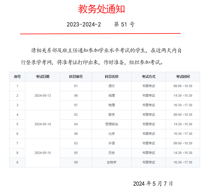 2023-2024-2教务处第51号通知