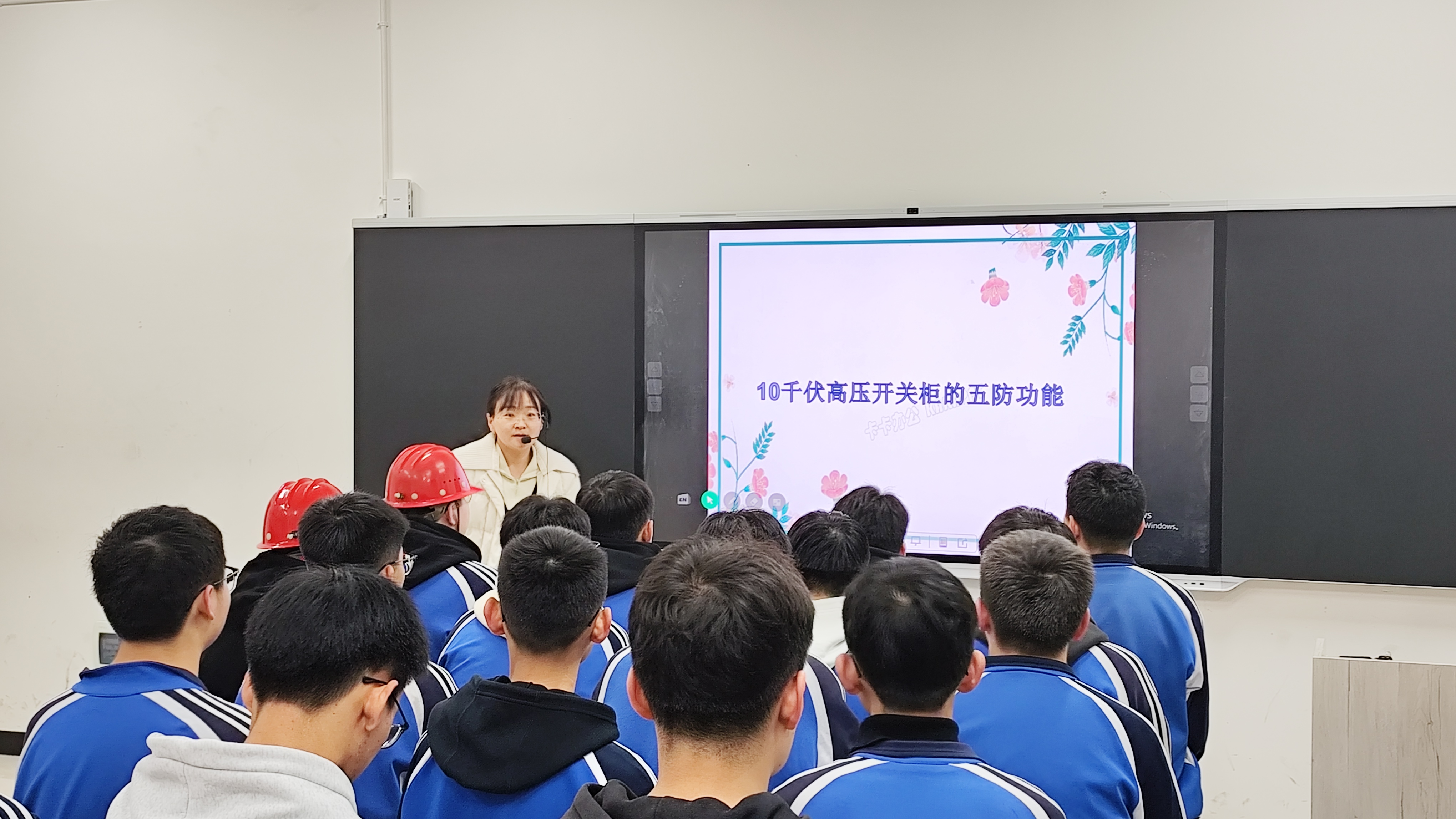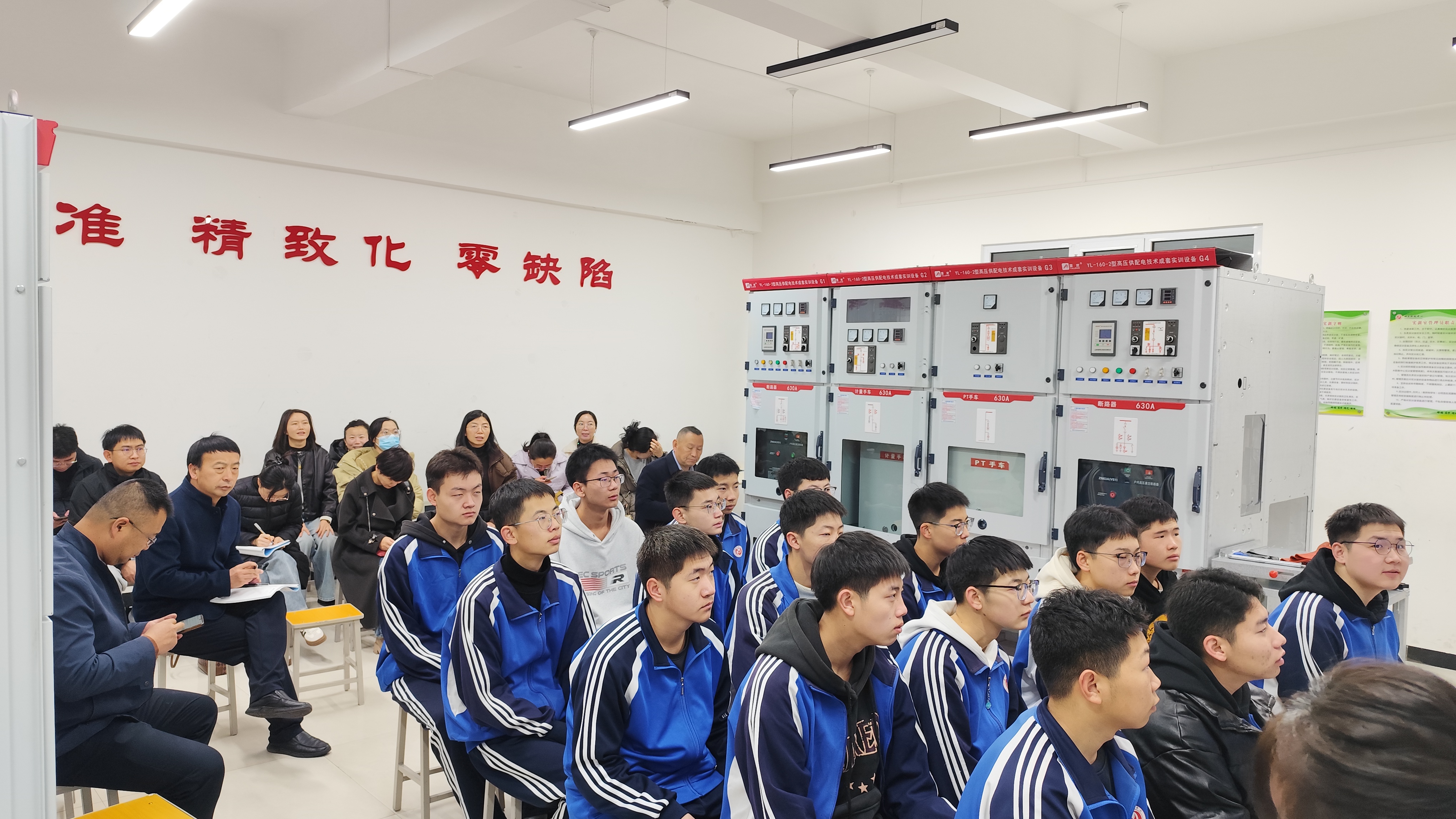 上周三早自习,电建组高江梅老师在实训楼高低压配电柜实训室进行了,实训课赛教,准备充分,表达流畅,学生实践能力强
