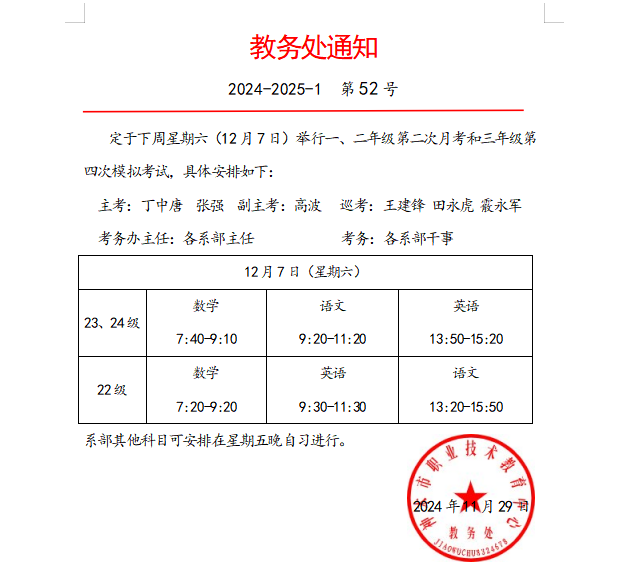 2024-2025-1教务处第52号通知