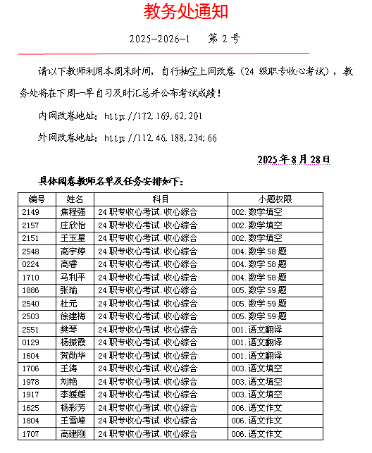 2025-2026-1教务处第2号通知