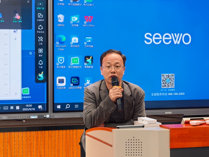 智慧互动课堂系统操作培训中,技术员分步骤演示了备课系统的互动课件制作、课堂活动设计等功能。"课堂实时评价系统"则通过弹幕提问、在线投票等方式,构建师生多维互动通道。参训教师通过分组实操,掌握了设备调试、互动白板使用、学生终端管理等核心技能。