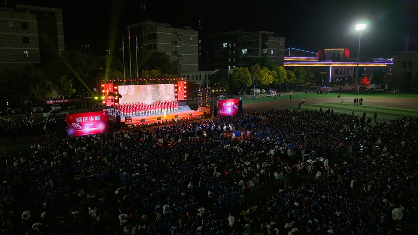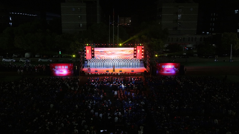 晚19:00,专业系合唱展演在滨河校区操场上演。师生们以优美的旋律、饱满的激情咏唱了必选曲目《保卫黄河》及自选曲目《团结就是力量》《毛委员和我们在一起》《世界赠予我的》《钢铁洪流进行曲》《红色娘子军连歌》《当那一天来临》《祖国颂》等一首首昂扬激越、催人奋进的歌曲,表达了他们对祖国母亲的真诚歌颂和美好祝福,唱响了对伟大祖国的无限热爱,赢得了台下评委老师和同学们的阵阵掌声。收尾环节,六位音乐专业教师还联袂演唱了《我和我的祖国》,歌声高亢激昂,震撼人心。