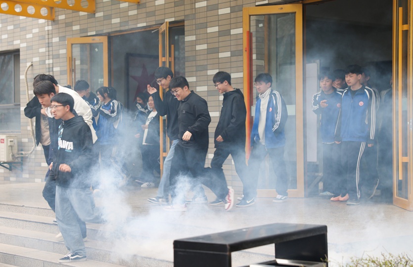 3月30日午自习,滨河校区、铧山校区同步开展了教学楼消防逃生应急疏散演练。演练中,随着疏散警报声响起,在老师及驻校教官的引导下,同学们按照预定路线,冷静、有序、快速地撤离到了安全地带。